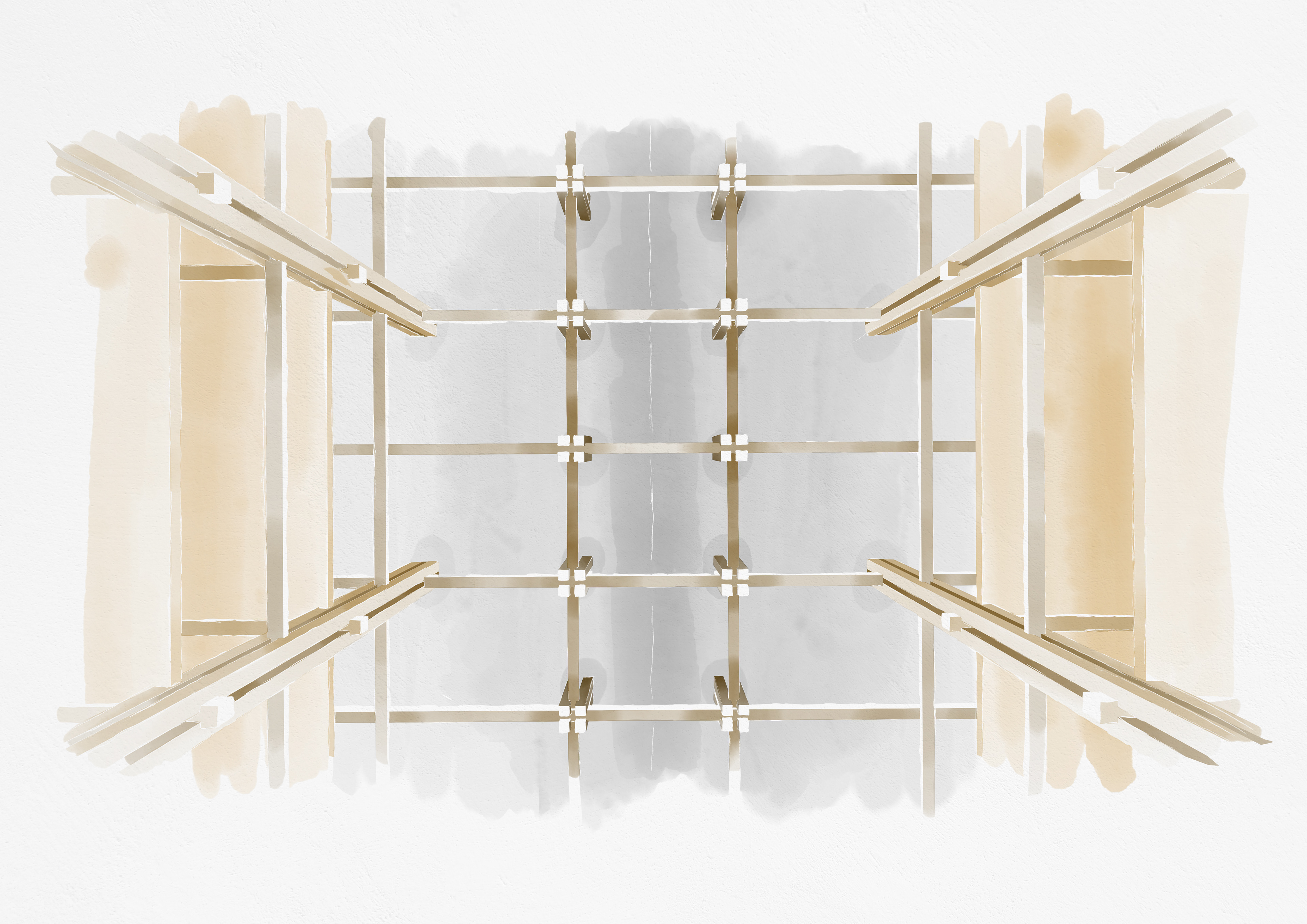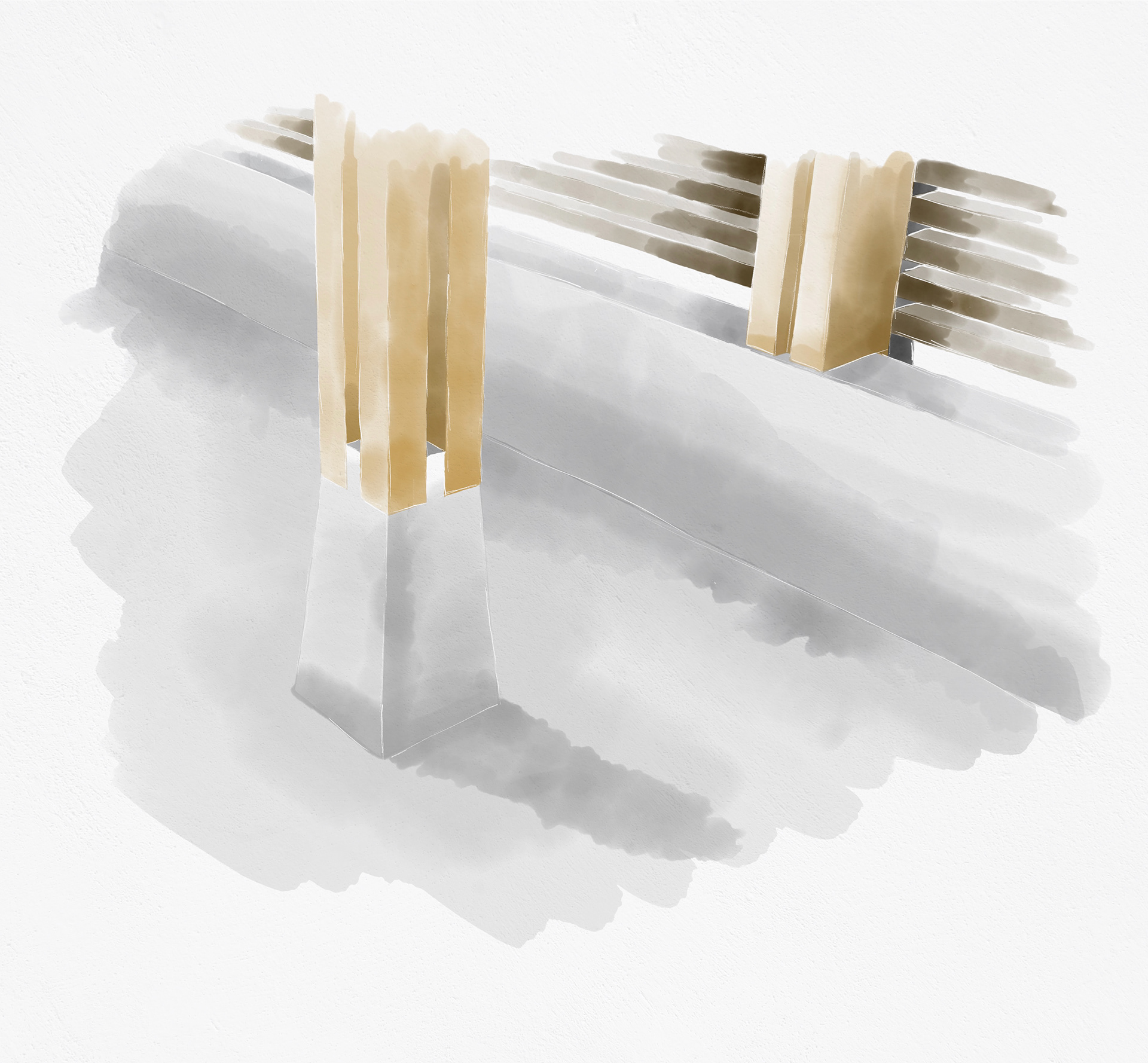 The construction site is in a calm location, outside of the dense city district. The form of the concept is compact, monolithic and abstract interpretation of barn typology to awake the interest possible visitors. All elements are in a constant interaction and contrast with each other, which is a strong symbolism of the design concept. The concrete foundation flows from the ground and rises into the timber construction. The joint works of timber construction is a (cultural) mixture of western and eastern traditional woodworking joinery. The delicacy of the wooden elements and the solidity of the rammed earth volume in the interior space, the western joinery and eastern timber construction, the sacred interior atmosphere and its strong connection to exterior space... The Gasthaus has been thought as a place, where one will enjoy the moment and feel the harmony between all.